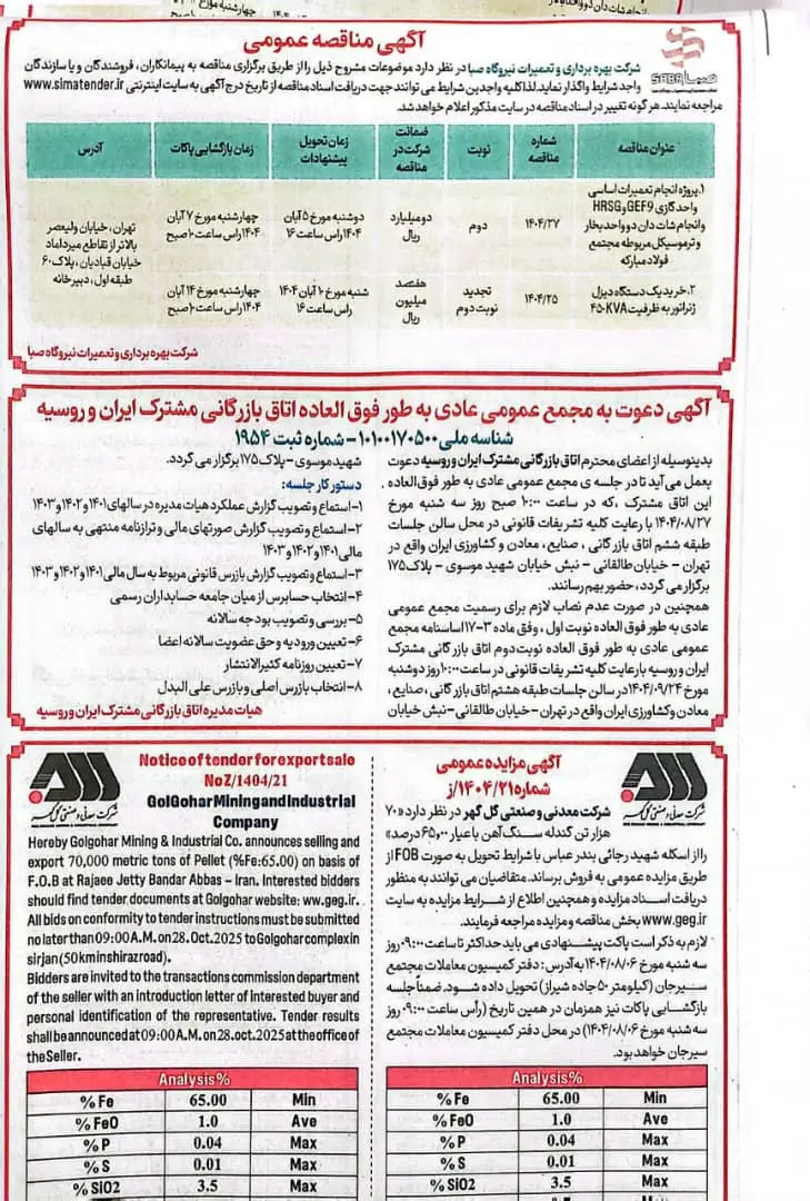28 مهر آگهی دعوت به مجمع عمومی عادی به طور فوقالعاده اتاق بازرگانی مشترک ایران و روسیه