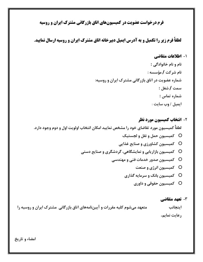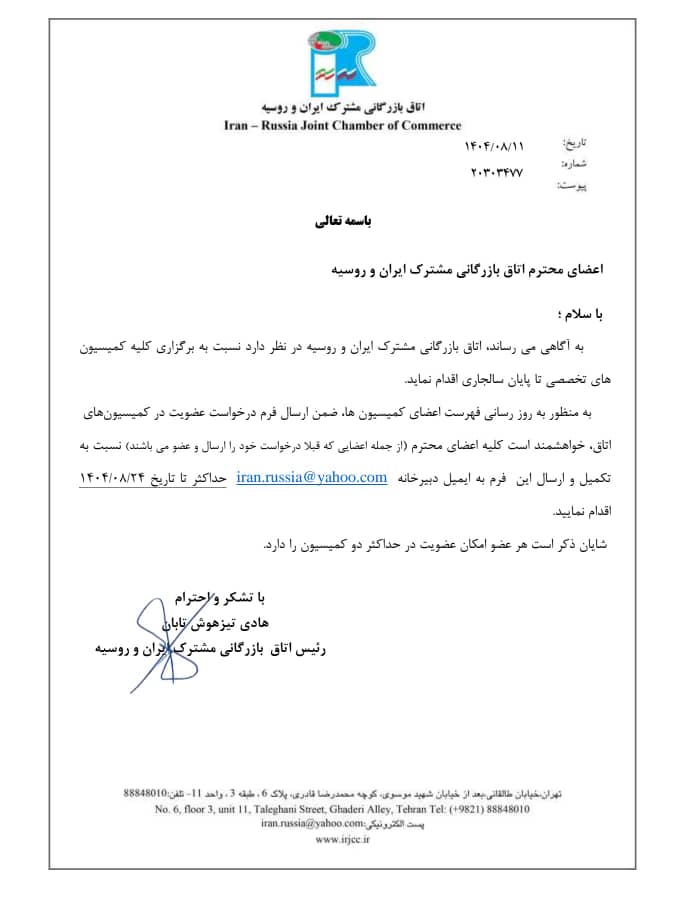 Iran & Russia | اطلاعیه برگزاری کمیسون‌های تخصصی